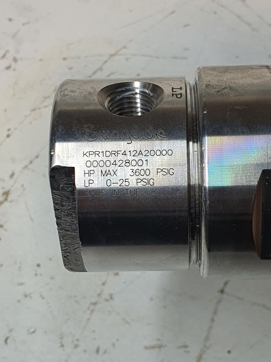 Swagelok KPR1DRF412A20000 — Stainless Steel PR Regulator, 0 to 25 psig (1.7 bar), 3600 psig (248 bar) inlet, F Config, PCTFE Seat, 1/4 in. FNPT, 0.06 Cv